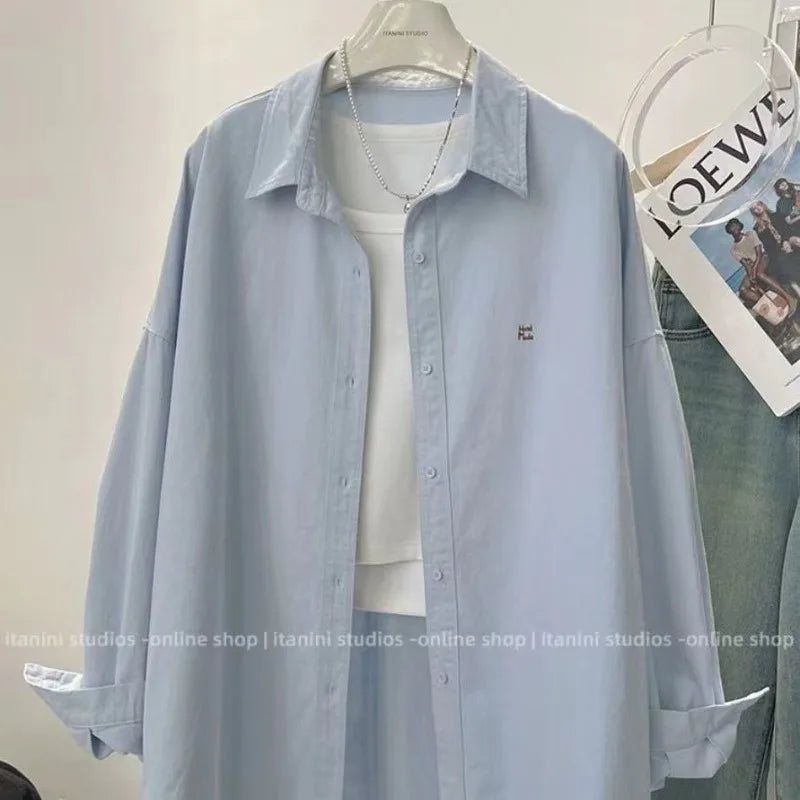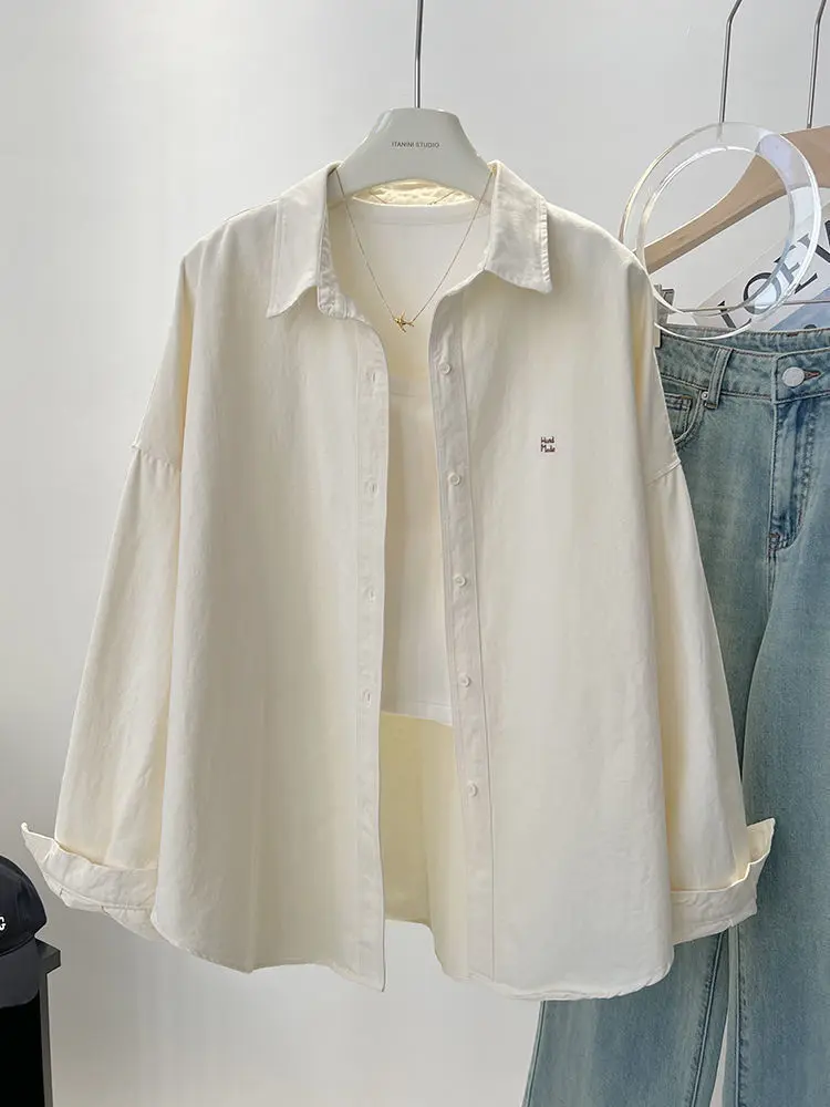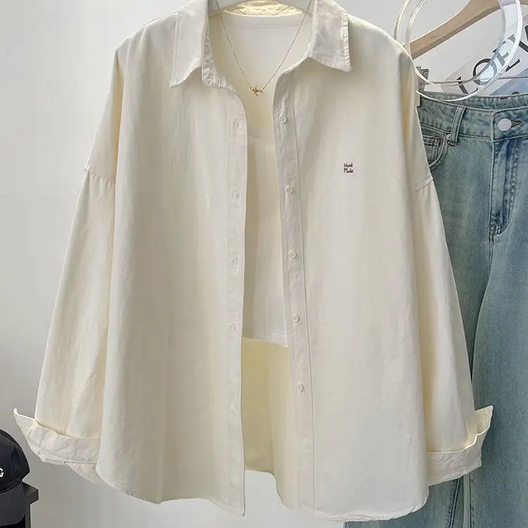Ladies Long Sleeve Letter Embroidered Elegant Chic Woman Shirt