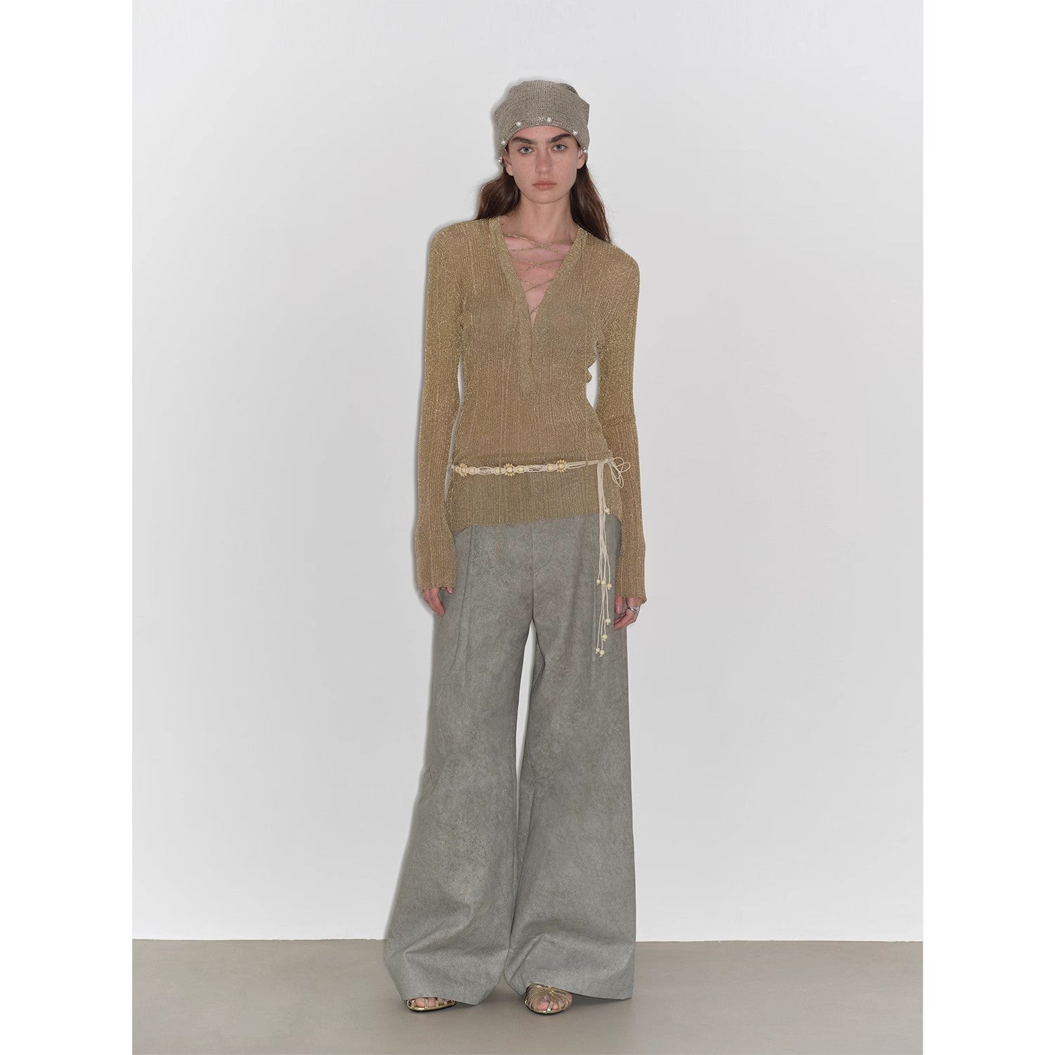"Light and Shadow Walking" Retro Fashionable Dirty Printed Reverse-Fold Mid-Low-Waist Double-pleat Straight-leg Wide-Leg Casual Pants