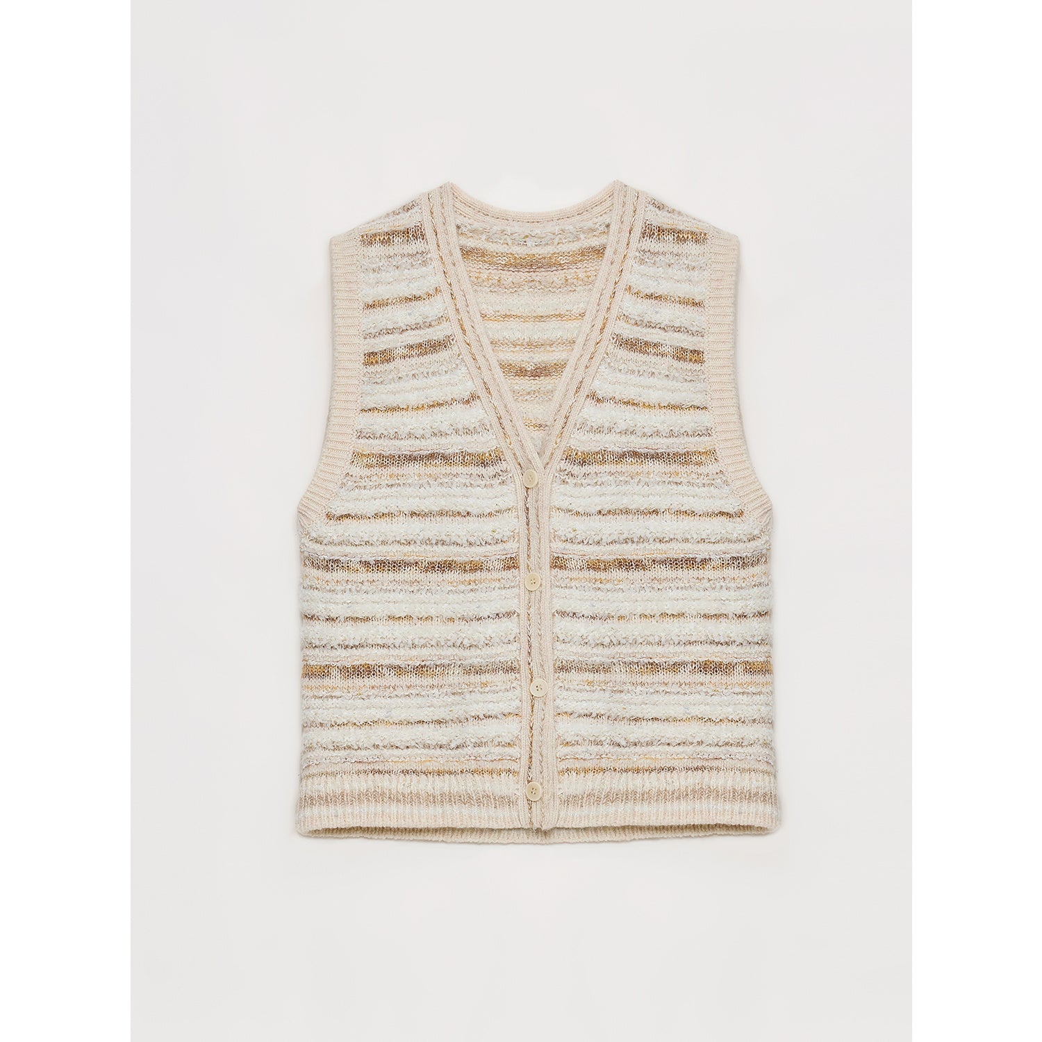"Nice Weekend" striped mixed woven V-neck early spring layered knitted cardigan top/vest