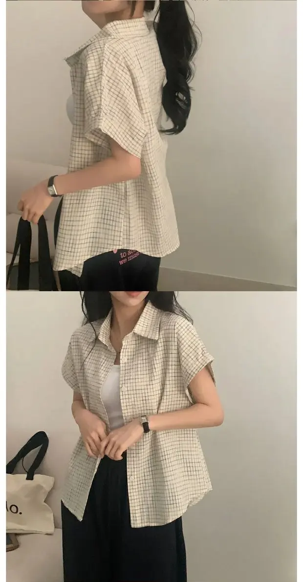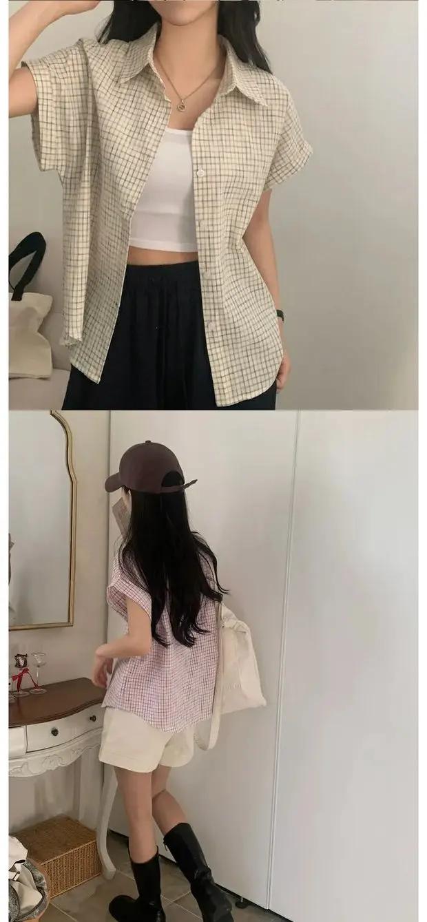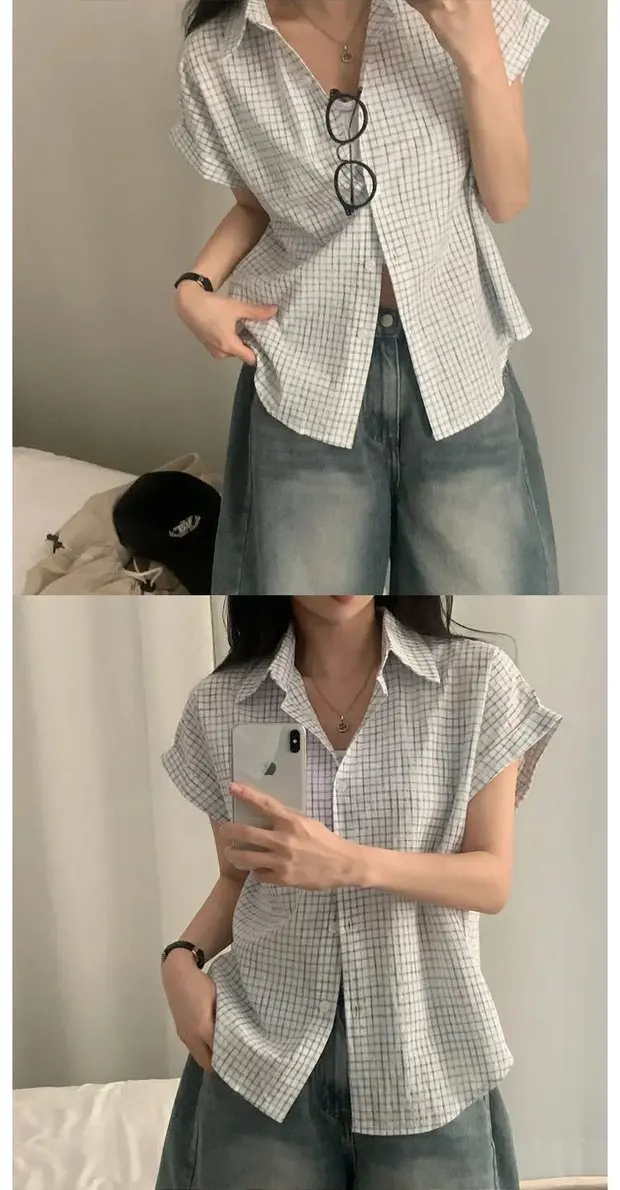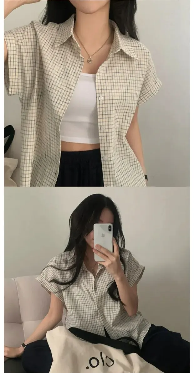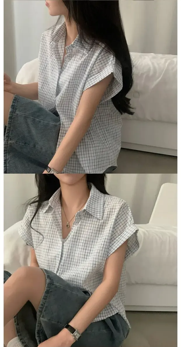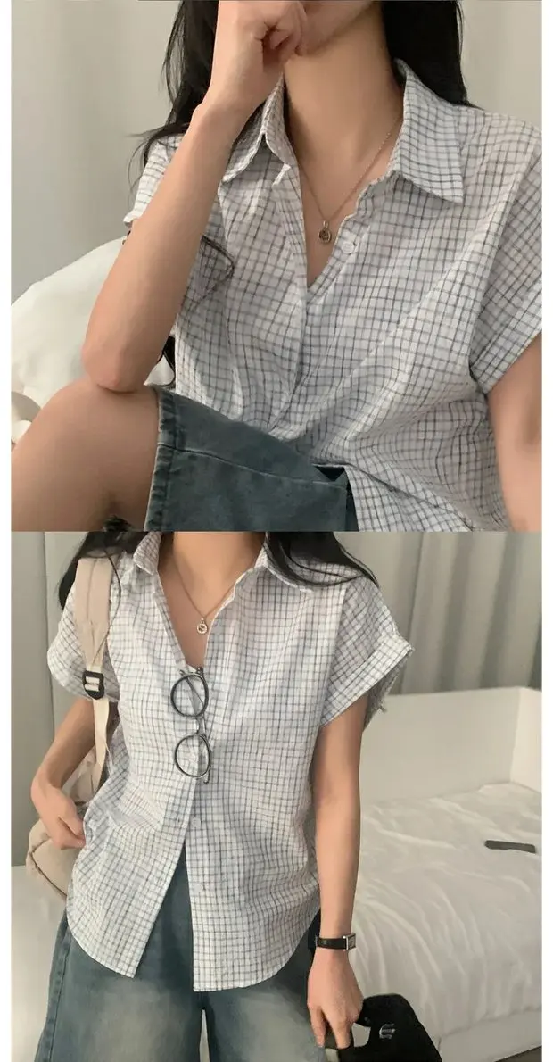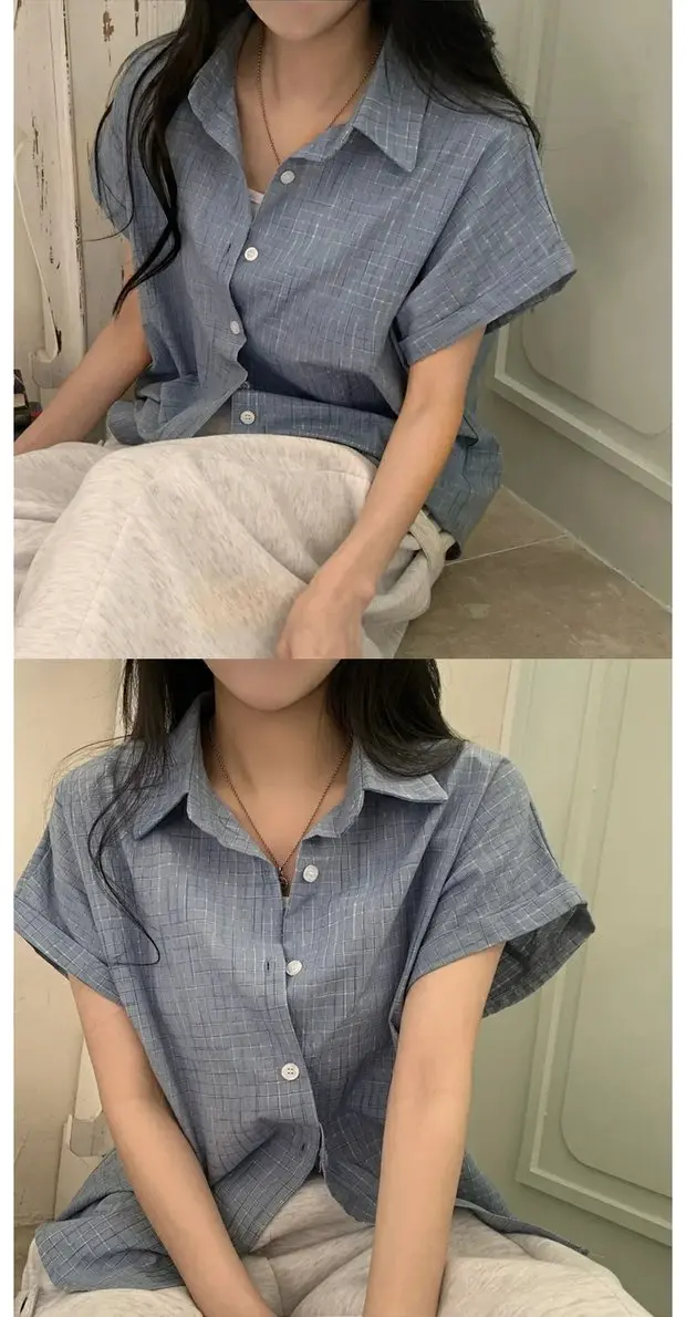 This chic shirt features a Korean style design, offering a trendy and fashionable look for the summer season.
