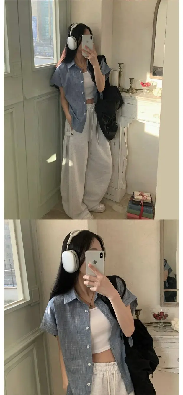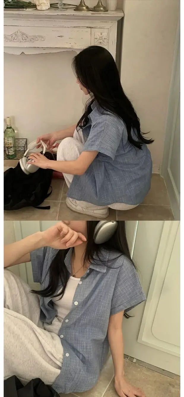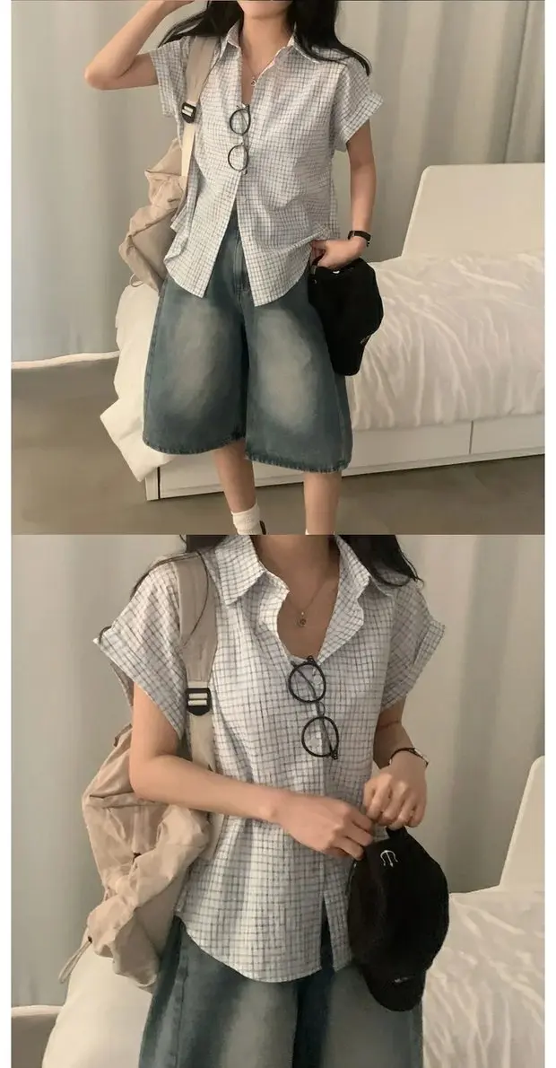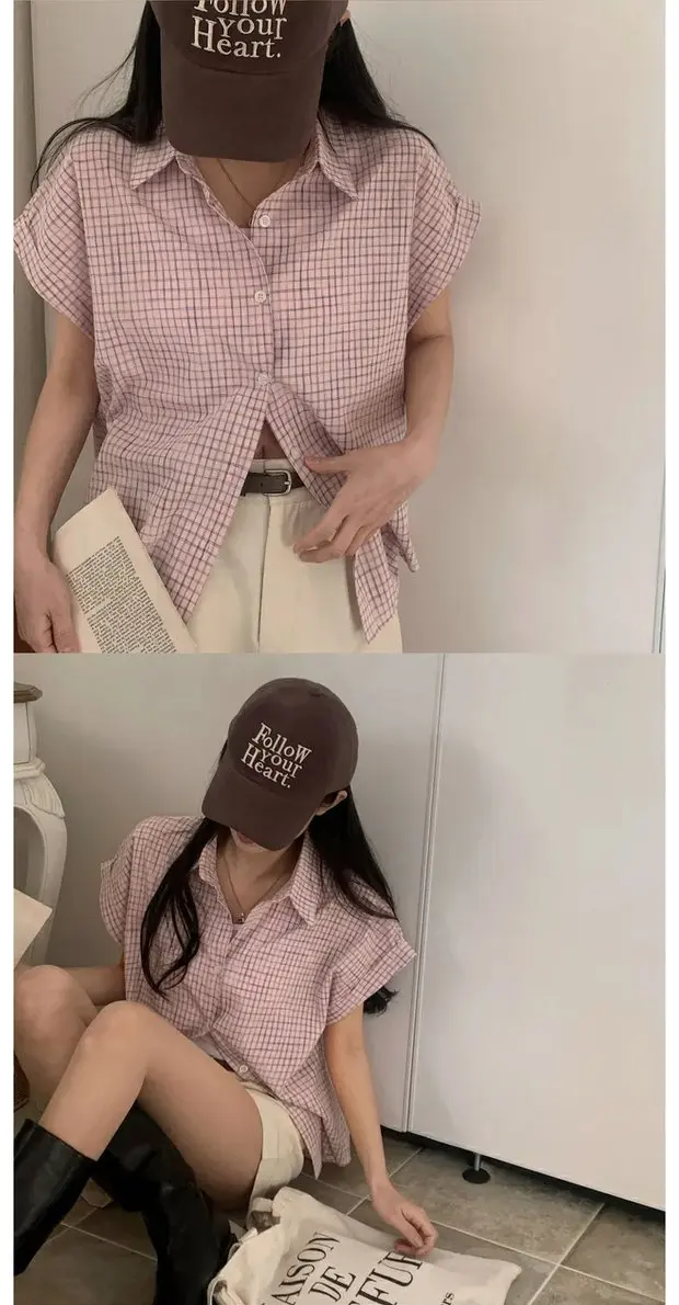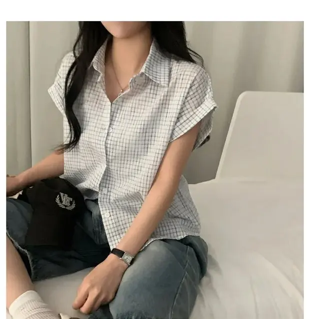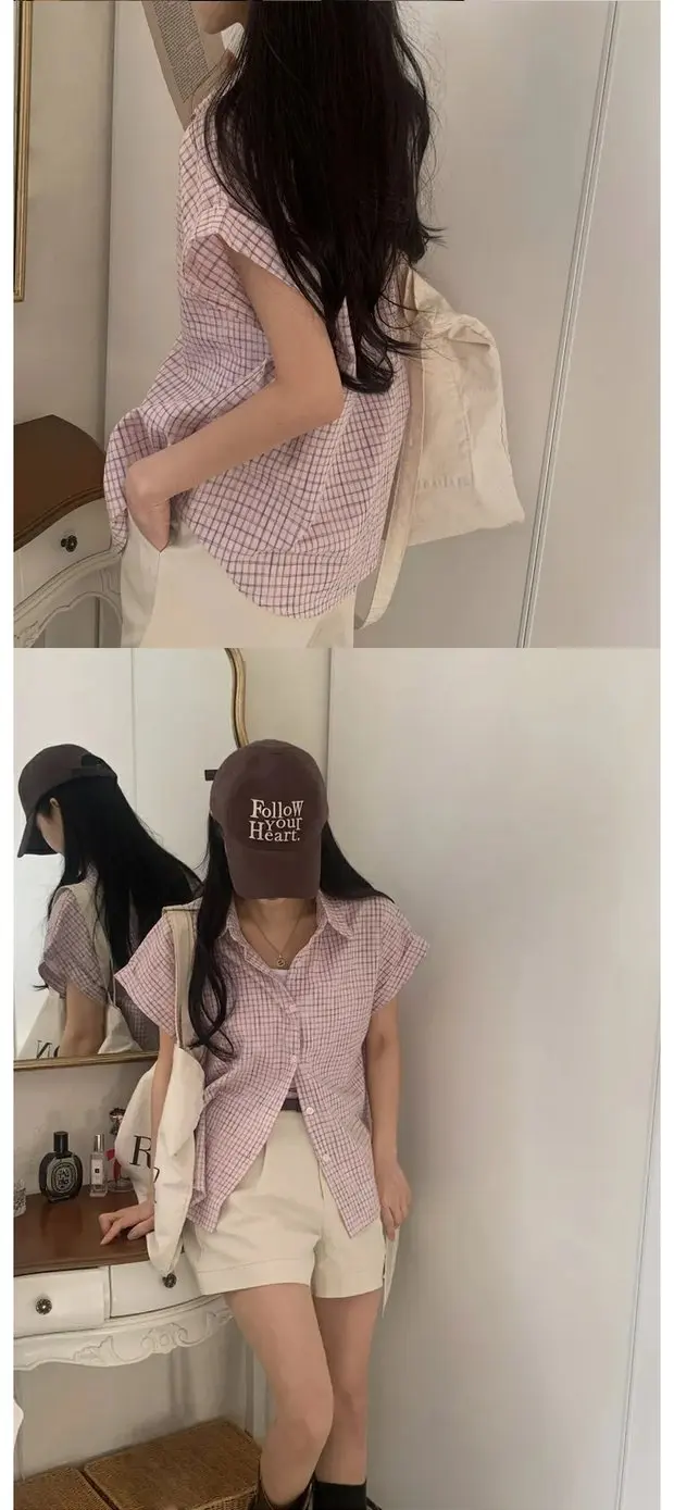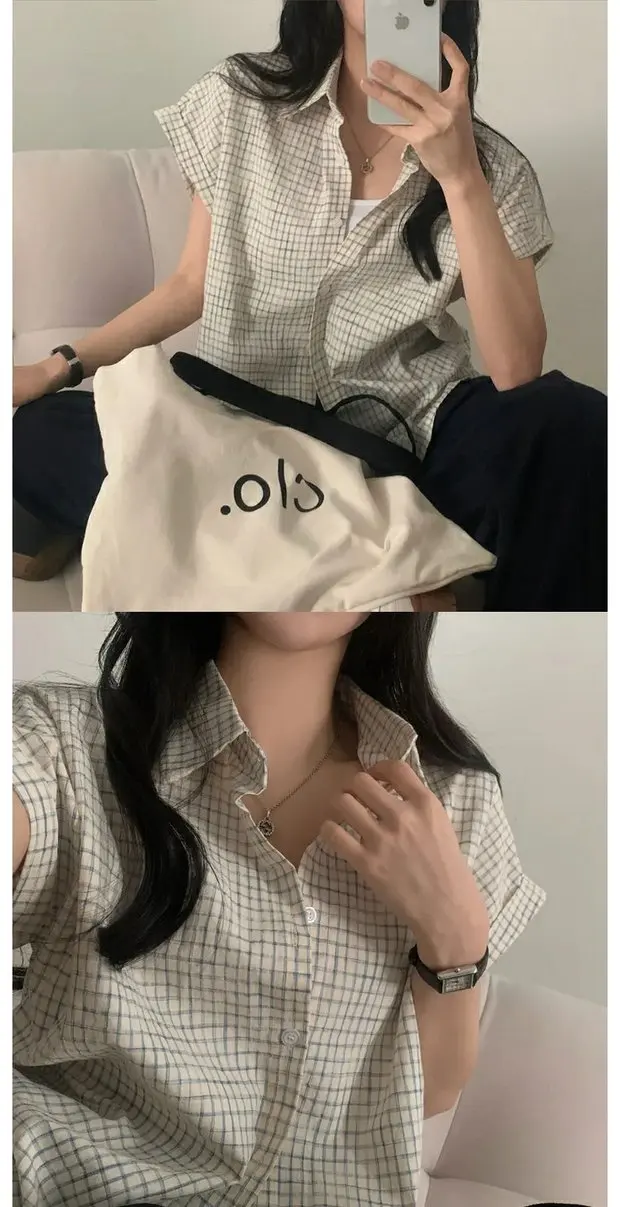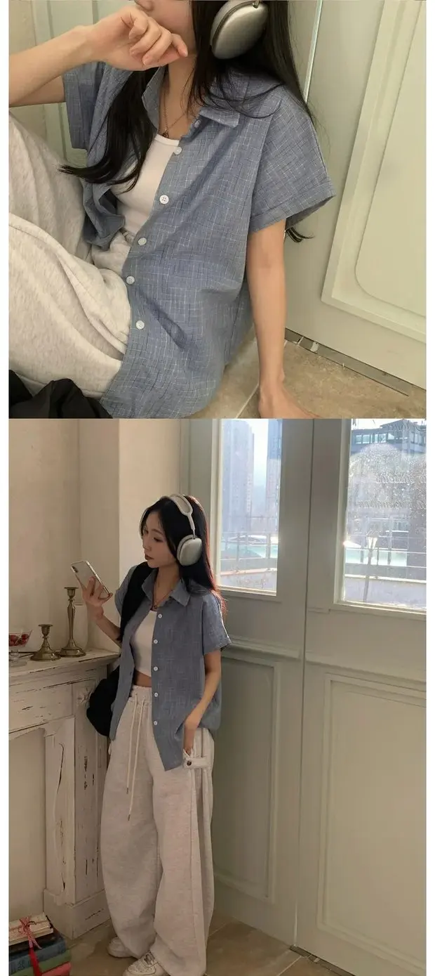 This chic shirt features a Korean style design, offering a trendy and fashionable look for the summer season.