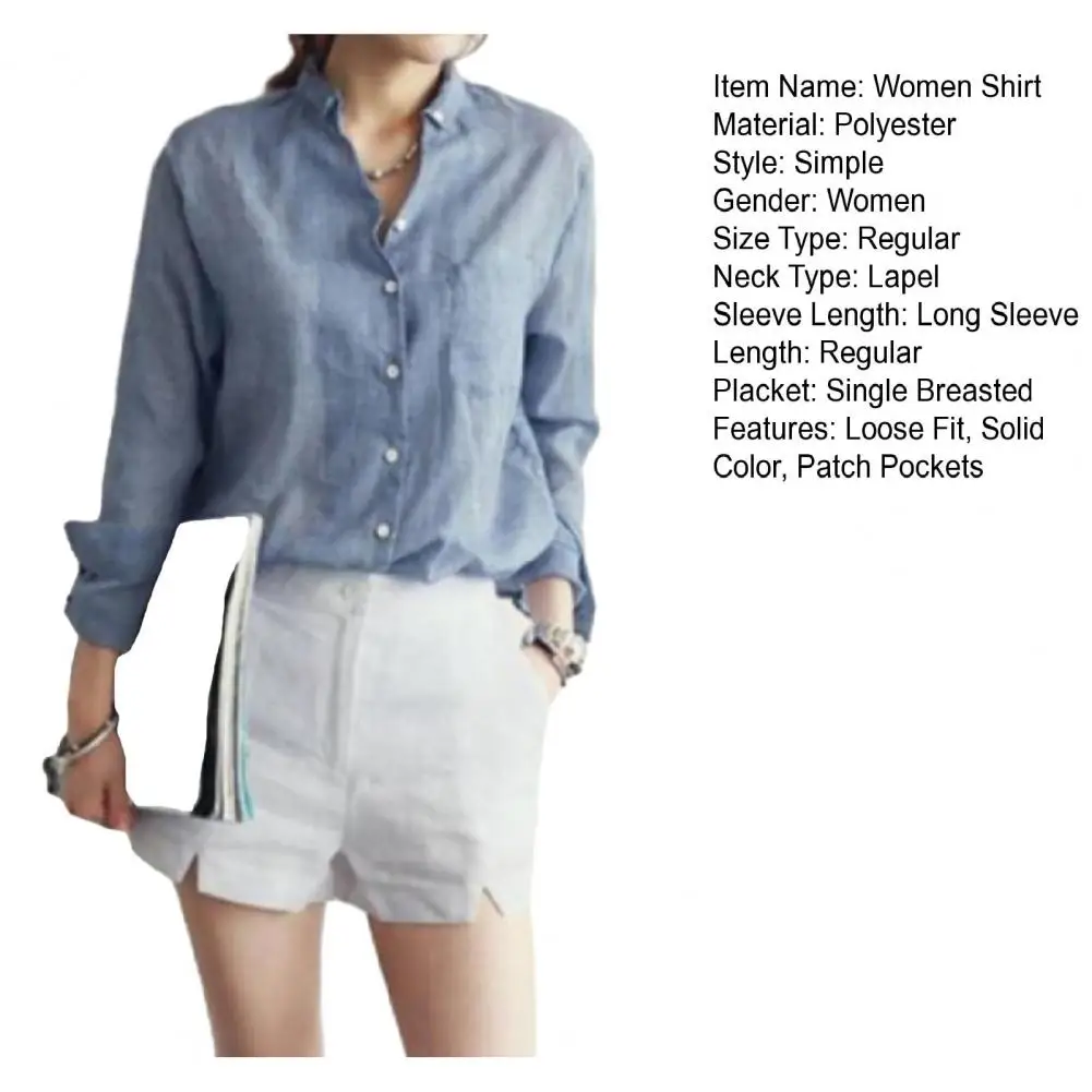 Women Lapel Long Sleeve Shirt Tops Loose Fit Single-breasted Patch Pocket Thin Casual Shirt Workwear